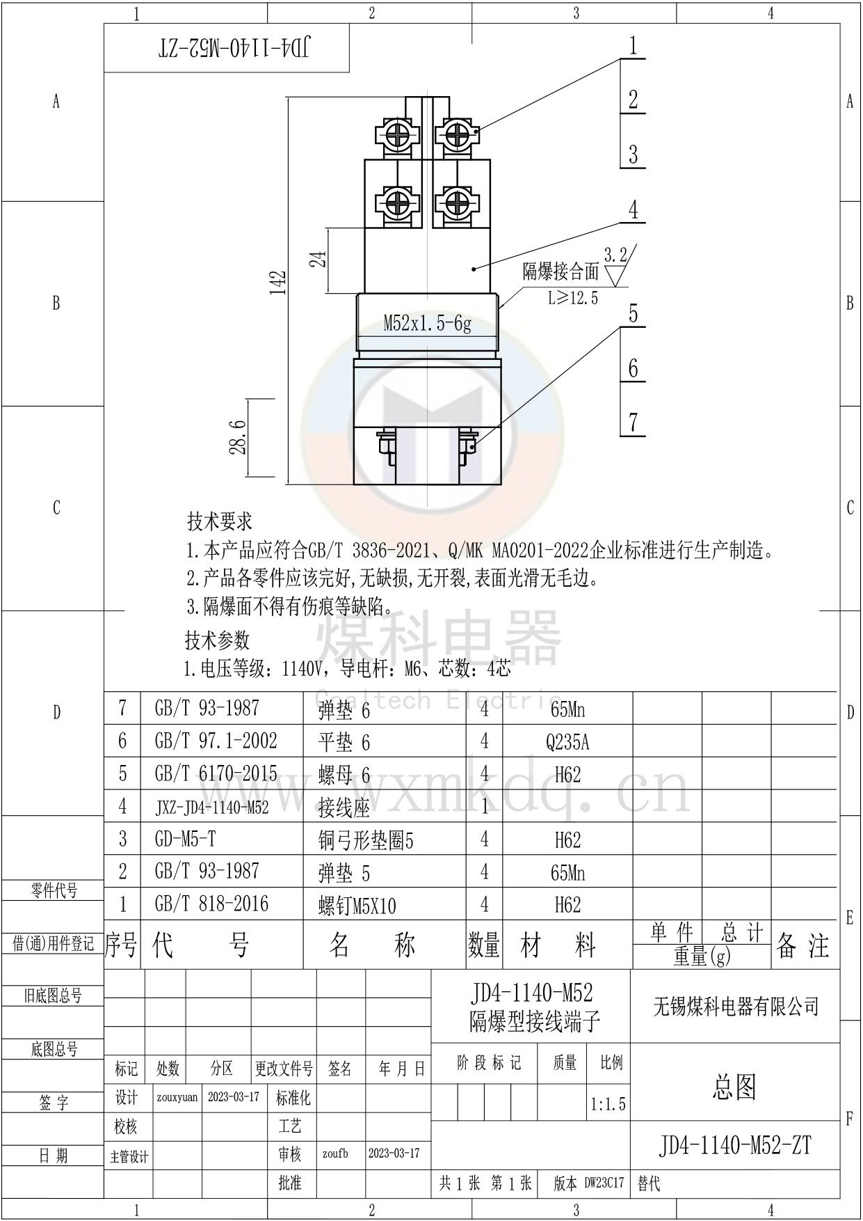 ◆ 電壓等級(jí):1140V,建議使用在電壓≤1140V的場(chǎng)所;