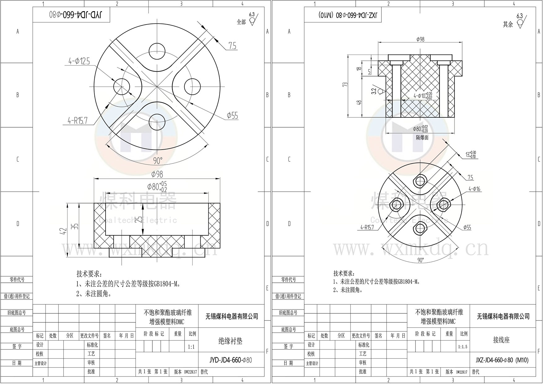 ◆ 絕緣材料:不飽和聚酯玻璃纖維增強模塑料(DMC),通過火焰燒蝕試驗 !