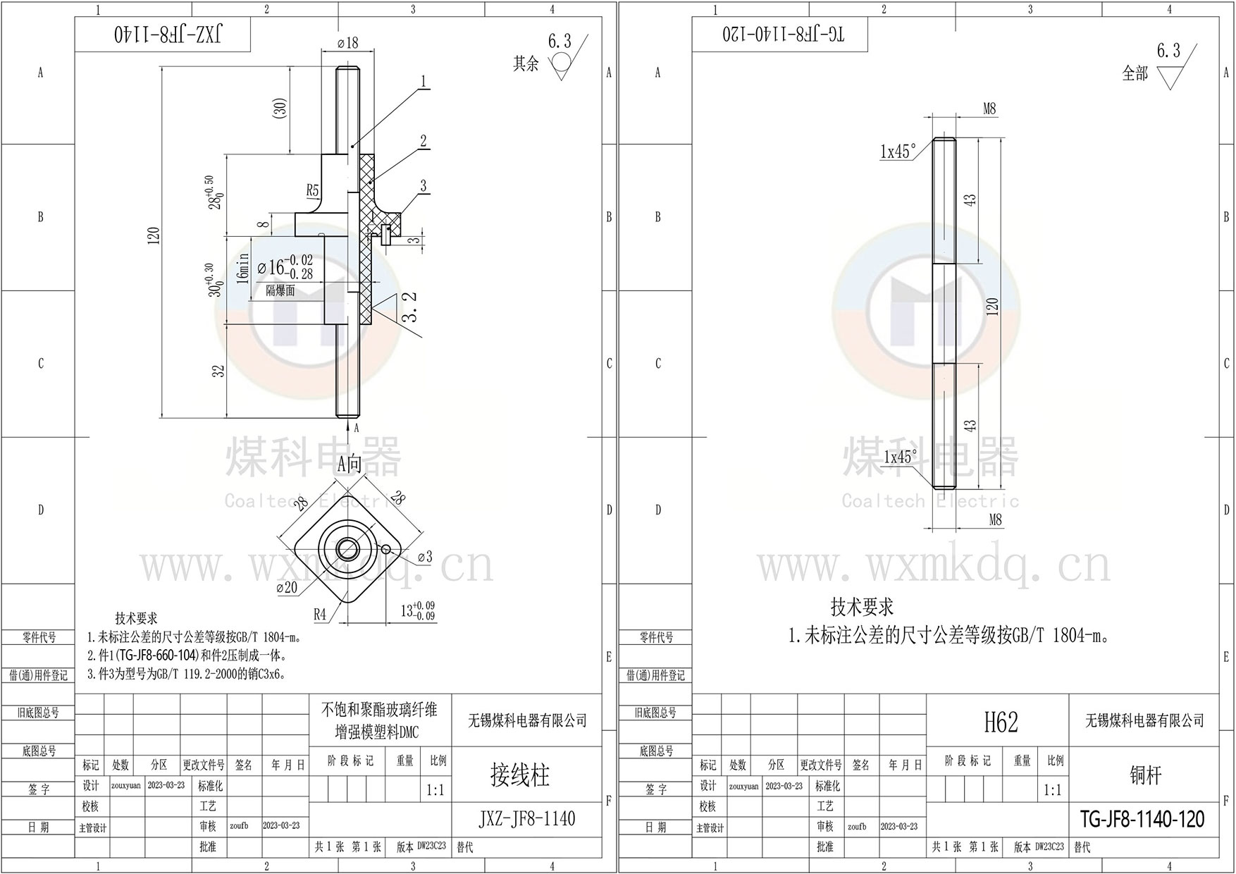 ◆ 接線螺桿:M8(H62黃銅),額定電流大小:≤63A;