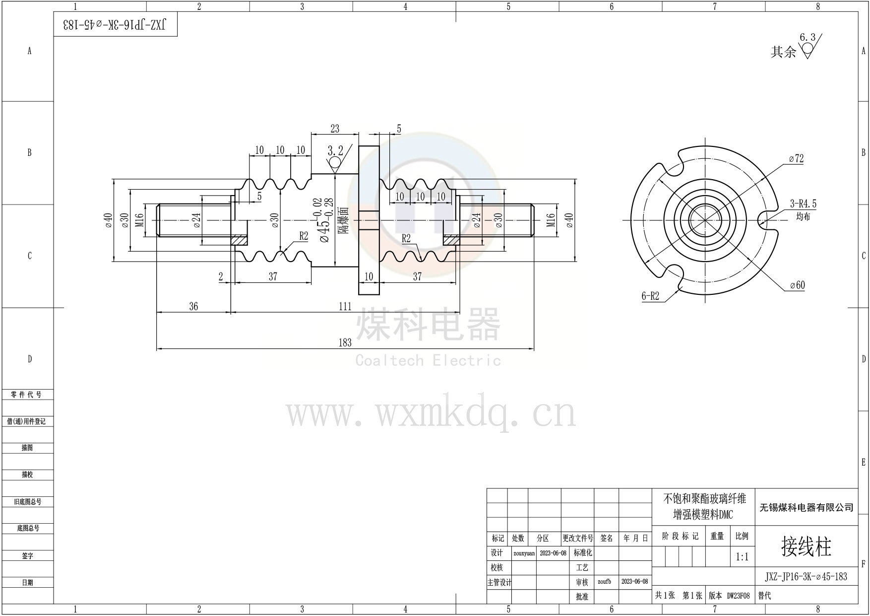 ◆ 絕緣材料:不飽和聚酯玻璃纖維增強(qiáng)模塑料(DMC)!