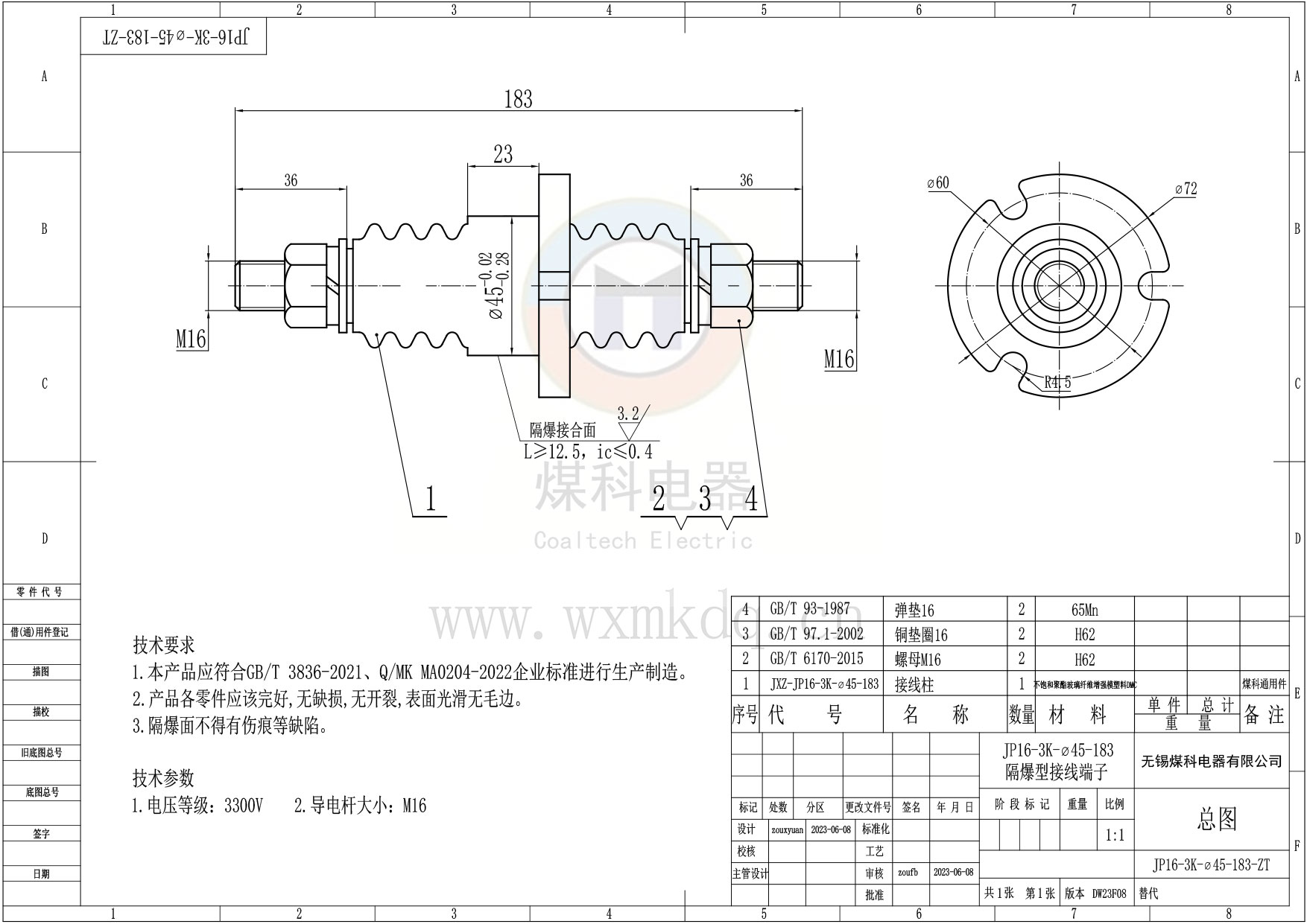 ◆ 安裝尺寸:Φ45 隔爆銅套;