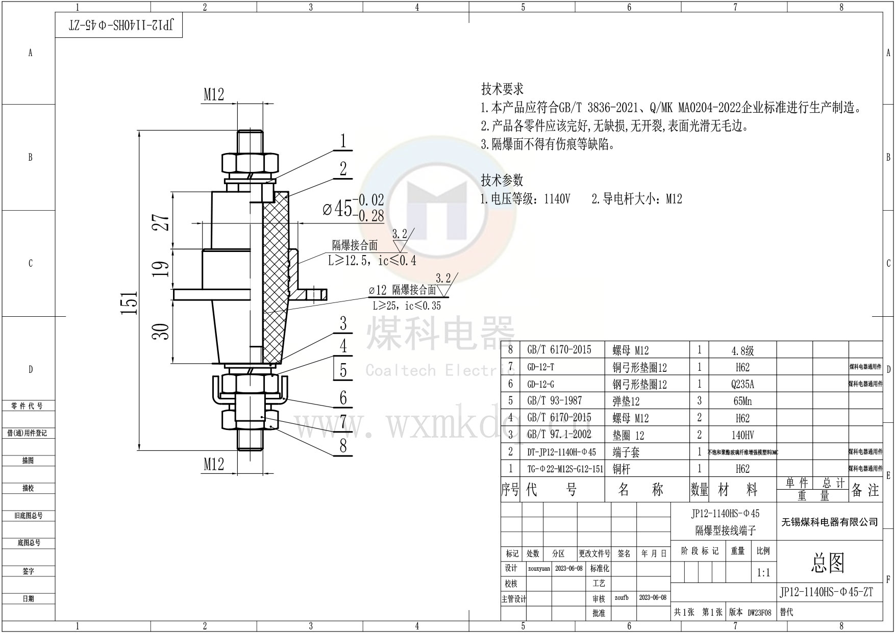 ◆ 電壓等級:1140V,建議使用在電壓≤1140V的場所;