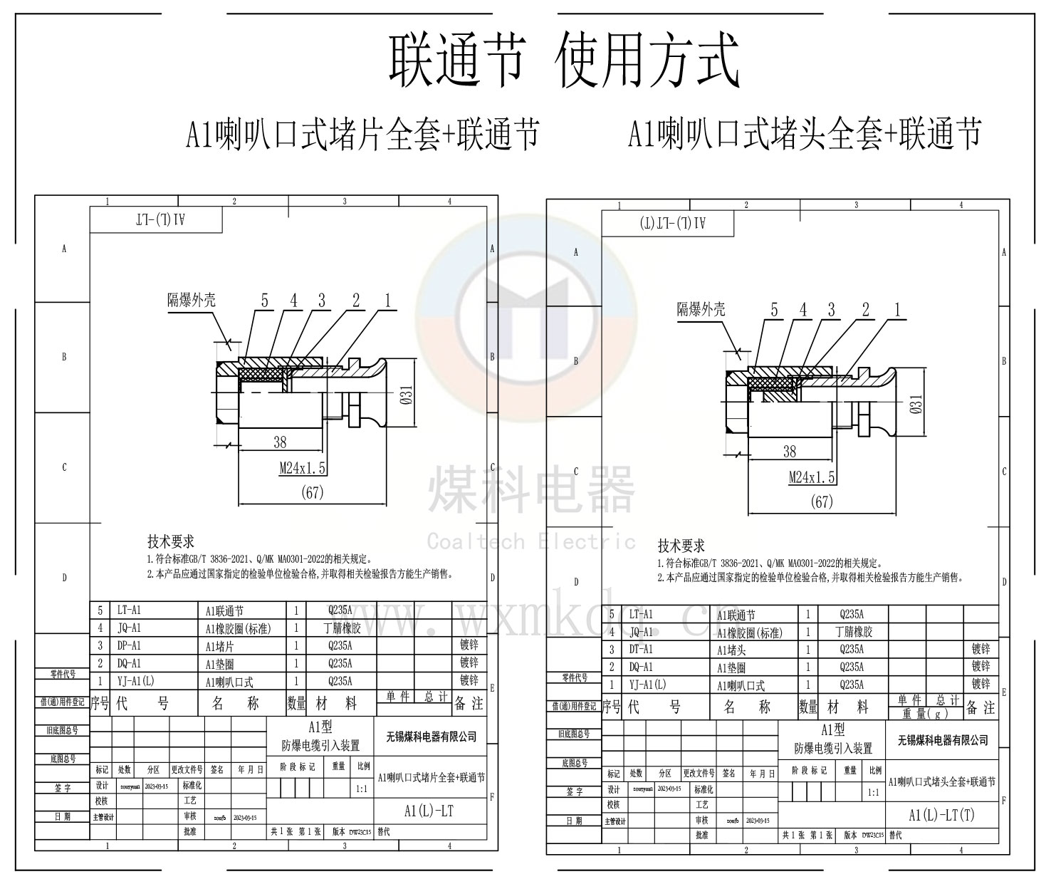 (12)A1喇叭口式堵頭全套+聯(lián)通節(jié) =A1喇叭口式螺母+橡膠圈(標(biāo)準(zhǔn))+墊圈+堵頭+聯(lián)通節(jié)