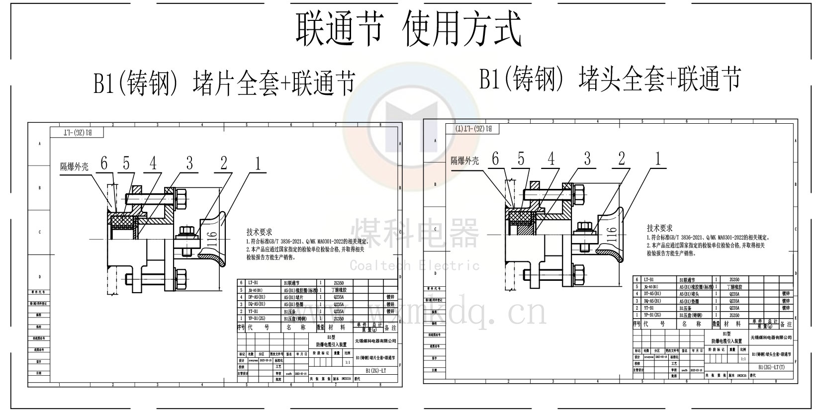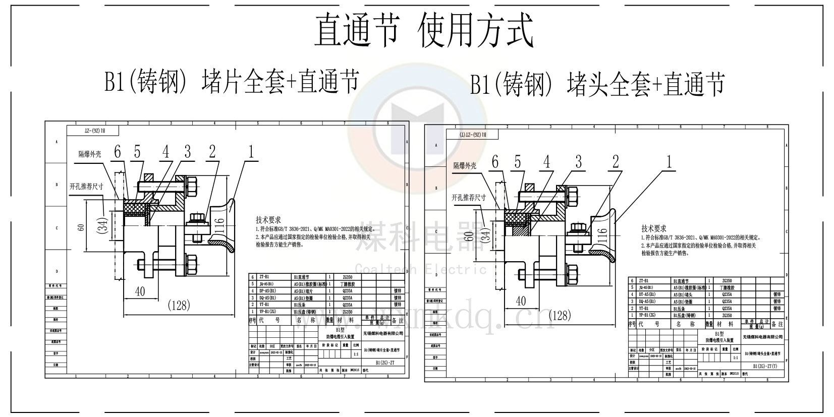 (3) B1(鑄鋼)堵片全套+直通節(jié) =B1壓盤(鑄鋼)+橡膠圈(標準)+墊圈+堵片+直通節(jié)