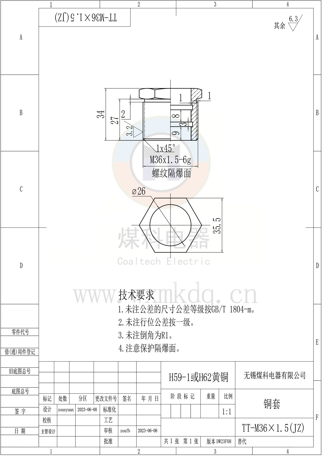 ◆ 安裝尺寸:M36x1.5。